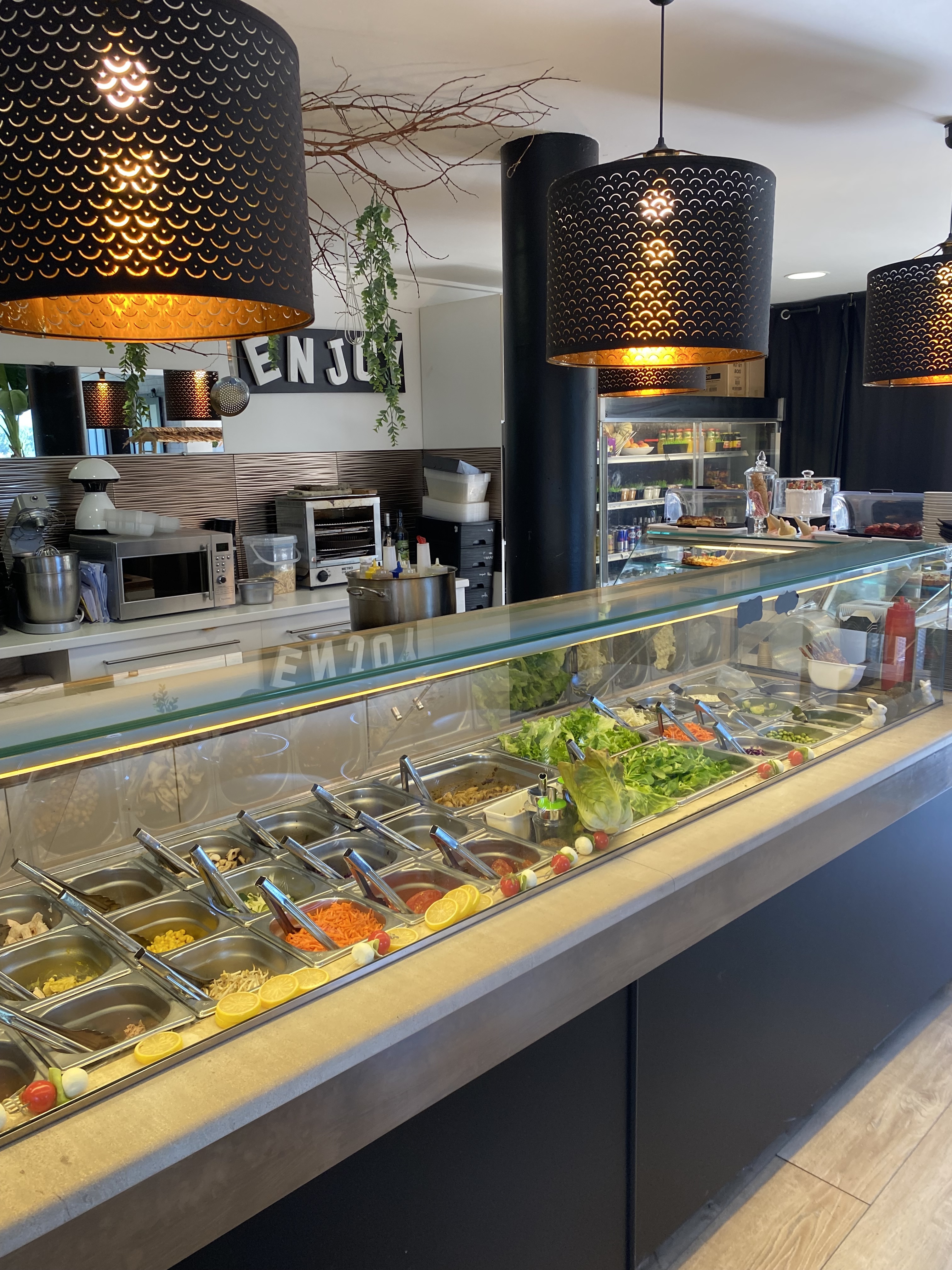 Une formule simple et rapide du midi sur place ou a emporter où l'on compose soit même sa salade avec des produits frais et fait maison. Nous proposons également des Pokés bowl et bo bun , des plats du jour chaud différents tous les jours, tarte de légumes, croque monsieur... Mais c est aussi un service traiteur avec des plateaux repas , des buffets pour des sociétés et prives avec possibilité de livraison et des desserts maison. . Toutes les personnes végétariennes, sans gluten, végans, allergiques sont les bienvenue.