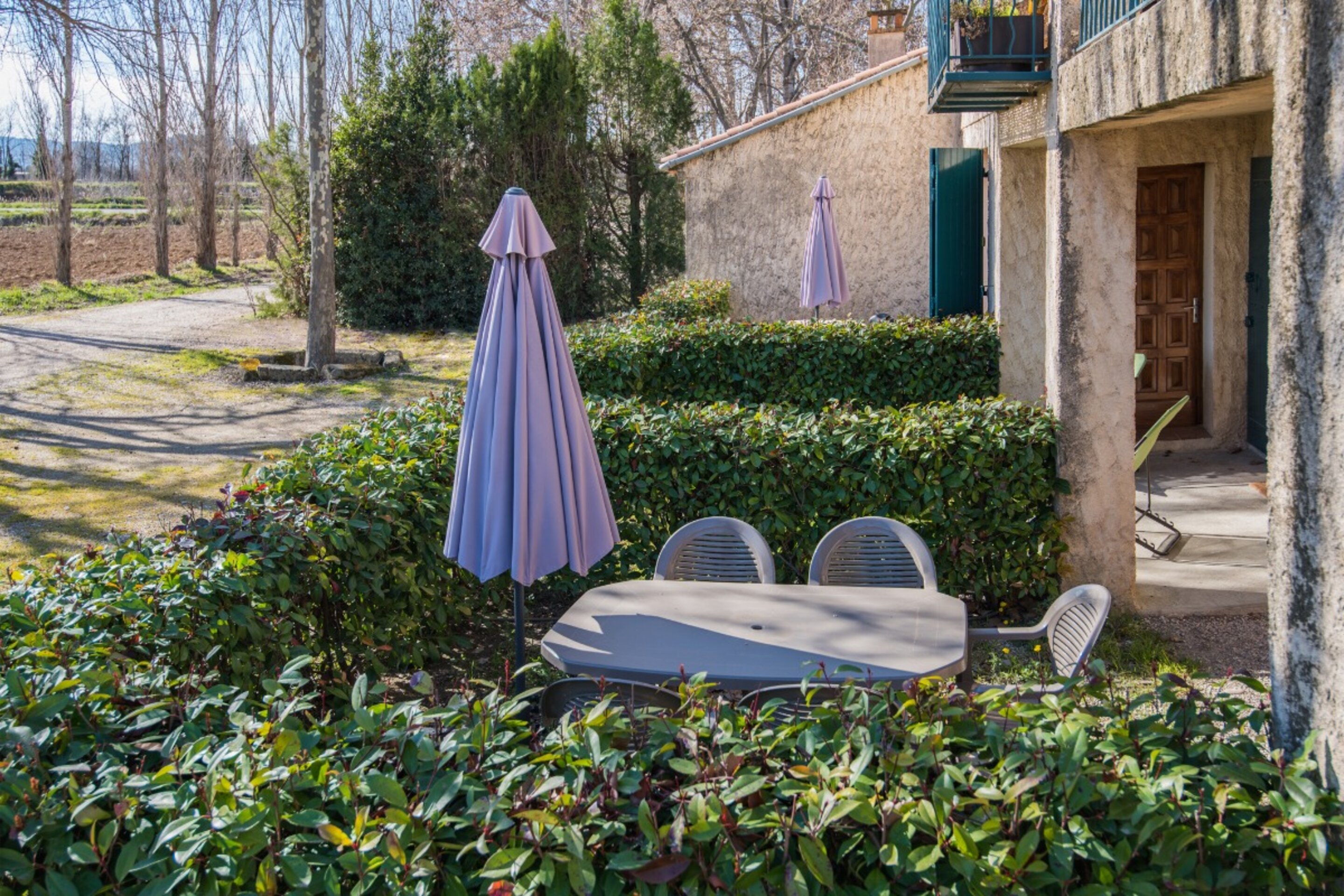 A deux kilomètres du centre-ville de Pertuis, un appartement plain-pied au rez-de-chaussée de la maison du propriétaire. \n En campagne, dans un vaste terrain ombragé non clos. \nIdéal pour passer des vacances au calme et en toute sérénité.